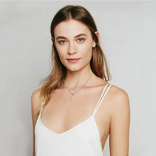 • Stainless Steel Cross Pendant Necklaces for Men Pendant Chain 20 Inch Silver
