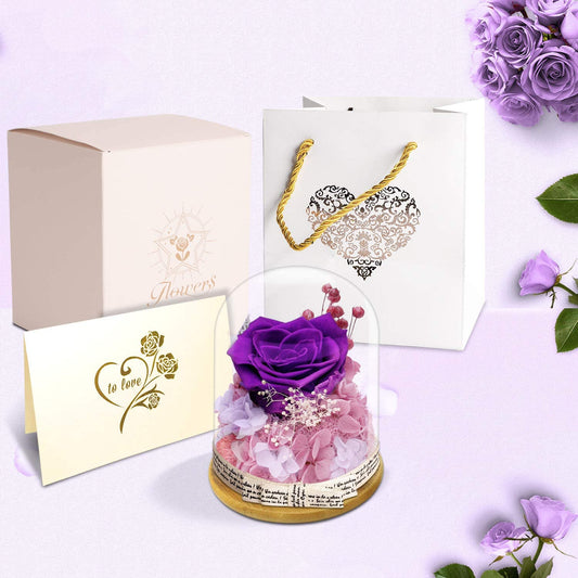Handmade Delivery Gift Preserved Rose in Glass Dome - Artificial Flowers Creative Gifts for Friend or Women and Family on Valentine'S Day,Chrismas,Birthday,Relationship Gifts for They.(Voilet)